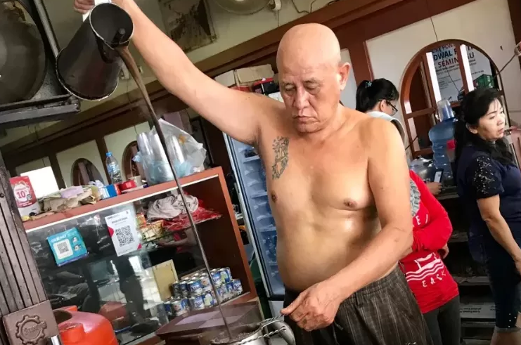 Julukan ini diberikan karena saat meracik kopi selalu bertelanjang dada.