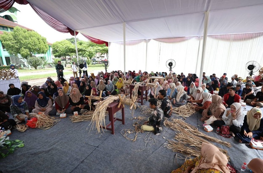 “Di sini ada bahan baku pisang atau pelepah pisang yang berlimpah. Mari kita manfaatkan. Ibu-ibu belajar yang baik, sehingga nanti bisa dapat penghasilan tambahan yang cukup besar,” ajak Gus Ipul.
