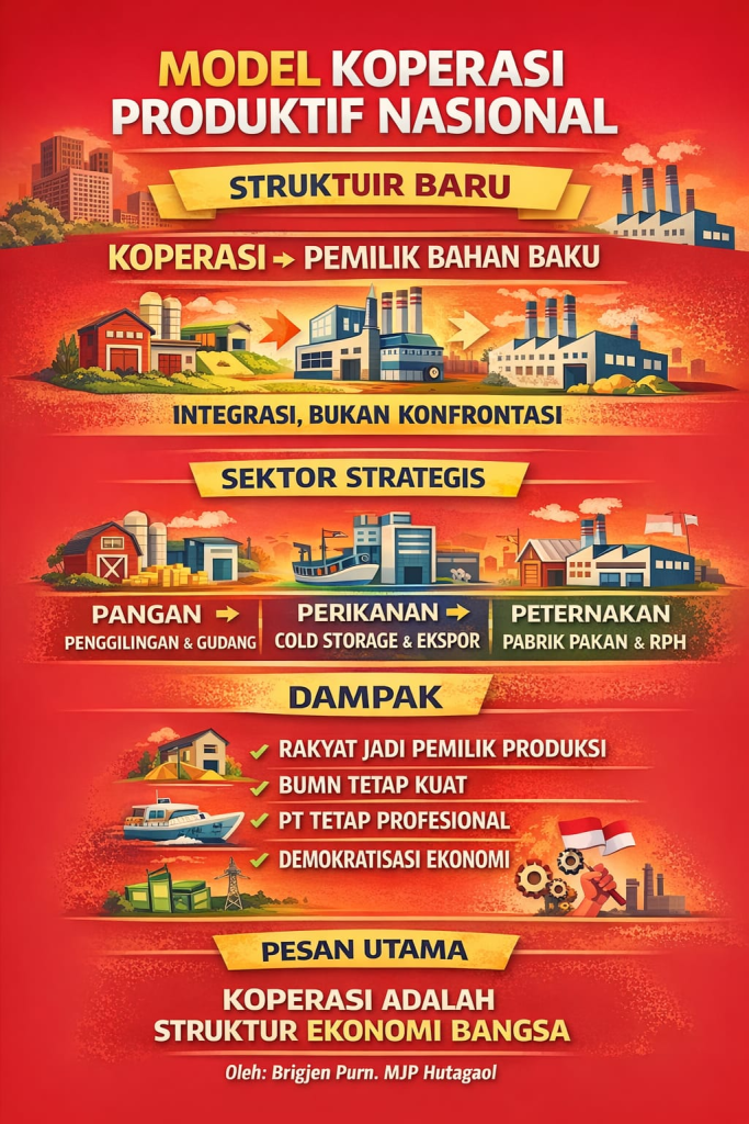BUMN tetap menjadi tulang punggung negara, tetapi rakyat ikut memiliki sistem produksi melalui koperasi. Ini bukan nasionalisasi, melainkan demokratisasi ekonomi.