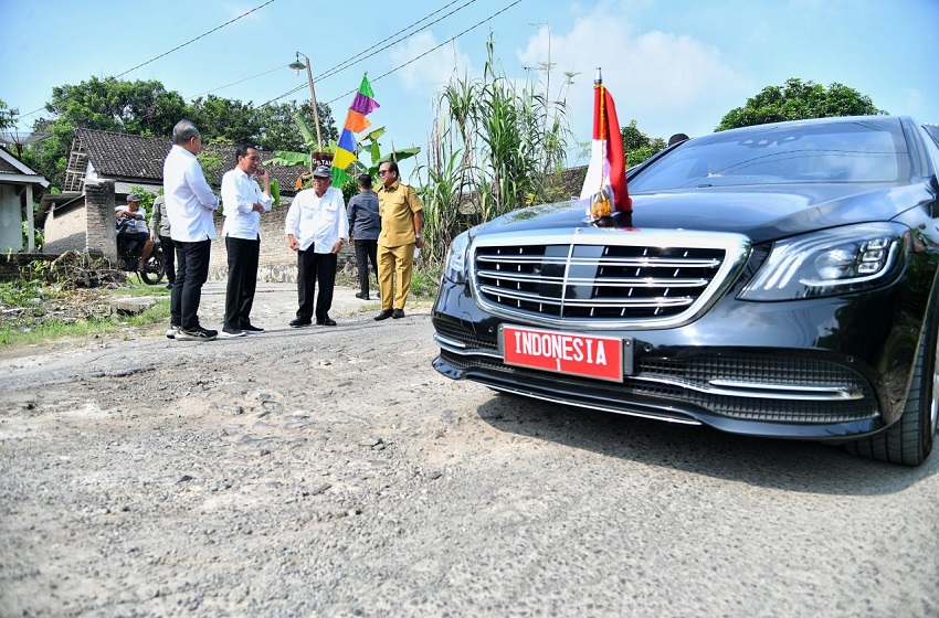 Momen Presiden Jokowi Berhenti Mendadak Cek Jalan Rusak di Lampung Selatan