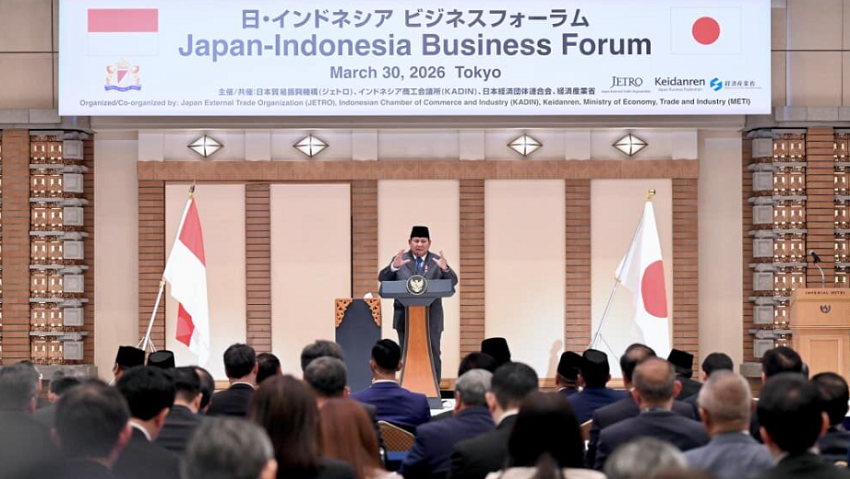 Presiden Republik Indonesia Prabowo Subianto menghadiri Forum Bisnis Indonesia-Jepang yang digelar di Imperial Hotel Tokyo pada Senin, 30 Maret 2026. Foto: BPMI Setpres/Laily Rachev