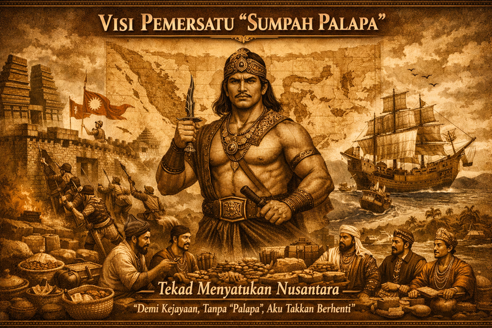 Tahun 1258 Saka (1336 Masehi), dalam sebuah pertemuan di istana Majapahit, Gajah Mada—yang baru saja diangkat sebagai Mahapatih—mengucapkan sumpah yang akan tercatat dalam sejarah nusantara. Sumpah Palapa, sebagaimana termaktub dalam Pararaton, berbunyi bahwa ia tidak akan menikmati palapa (diartikan sebagai rempah-rempah atau kenikmatan duniawi) sebelum Nusantara benar-benar dipersatukan di bawah Majapahit.