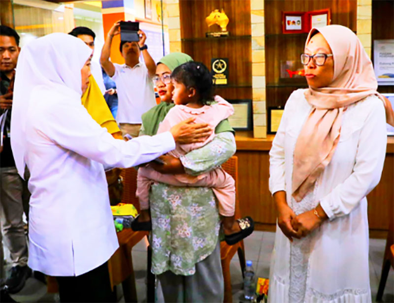 Didampingi Wakil Bupati Banyuwangi Mujiono dan Kepala OPD Provinsi Jatim, Gubernur Khofifah menyerahkan santunan berupa uang senilai Rp 10 juta untuk masing-masing korban.